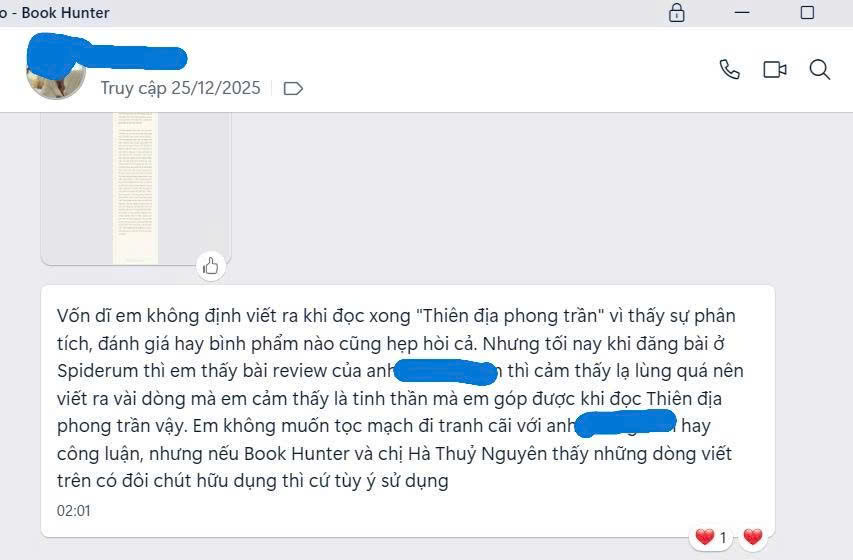 Viết Thiên địa phong trần với Hà Thủy Nguyên, trước cả tham vọng kiến tạo lịch sử hay lưu danh hay bản sách, đó là một pháp tu. Pháp tu của nhà văn – kẻ thấu hiểu, kẻ nếm trải, kẻ tái dựng, kẻ kiến tạo.